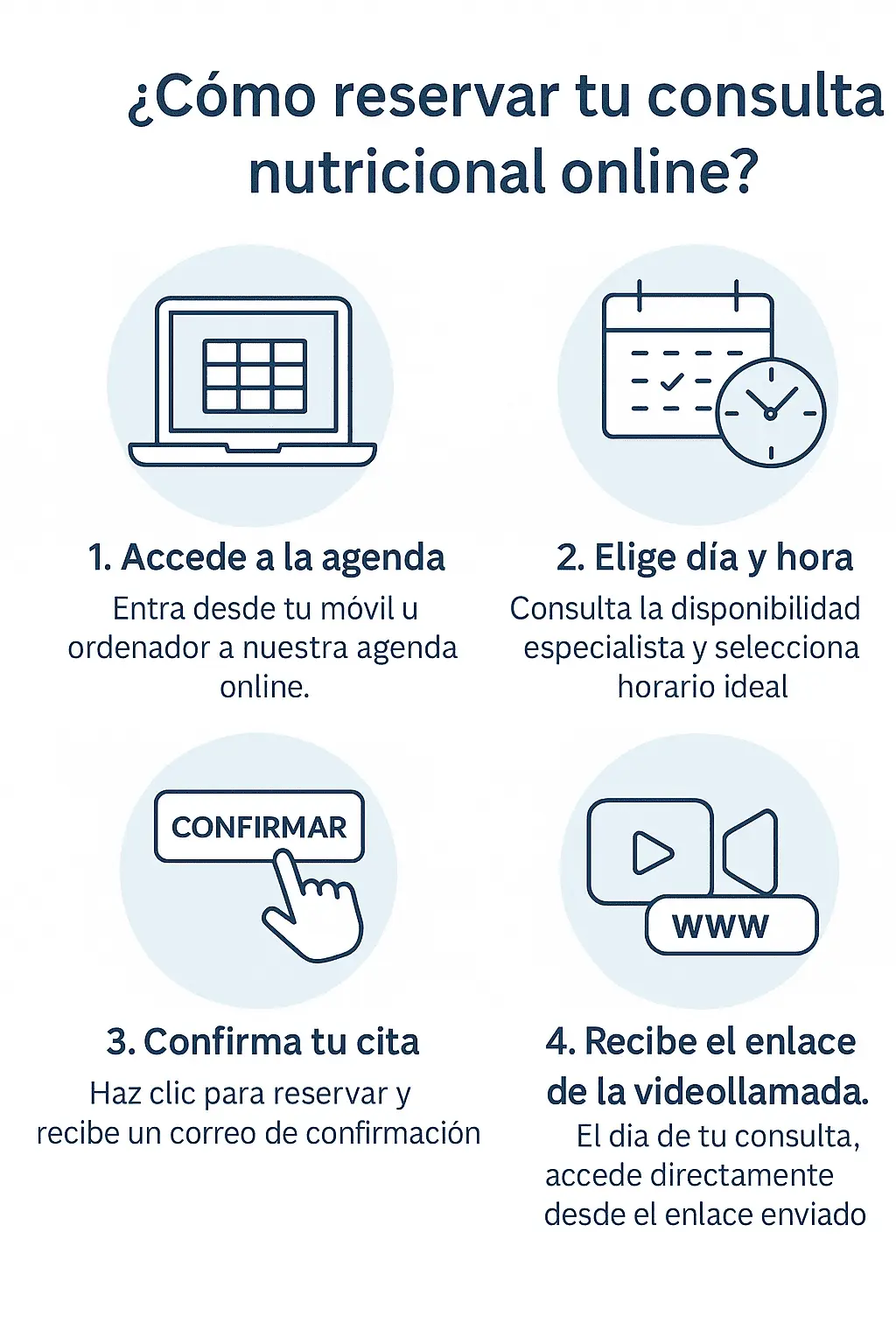 ¡Rápido, fácil y 100% online! En Medical Group hemos simplificado el proceso para que accedas a tu consulta nutricional en pocos pasos.